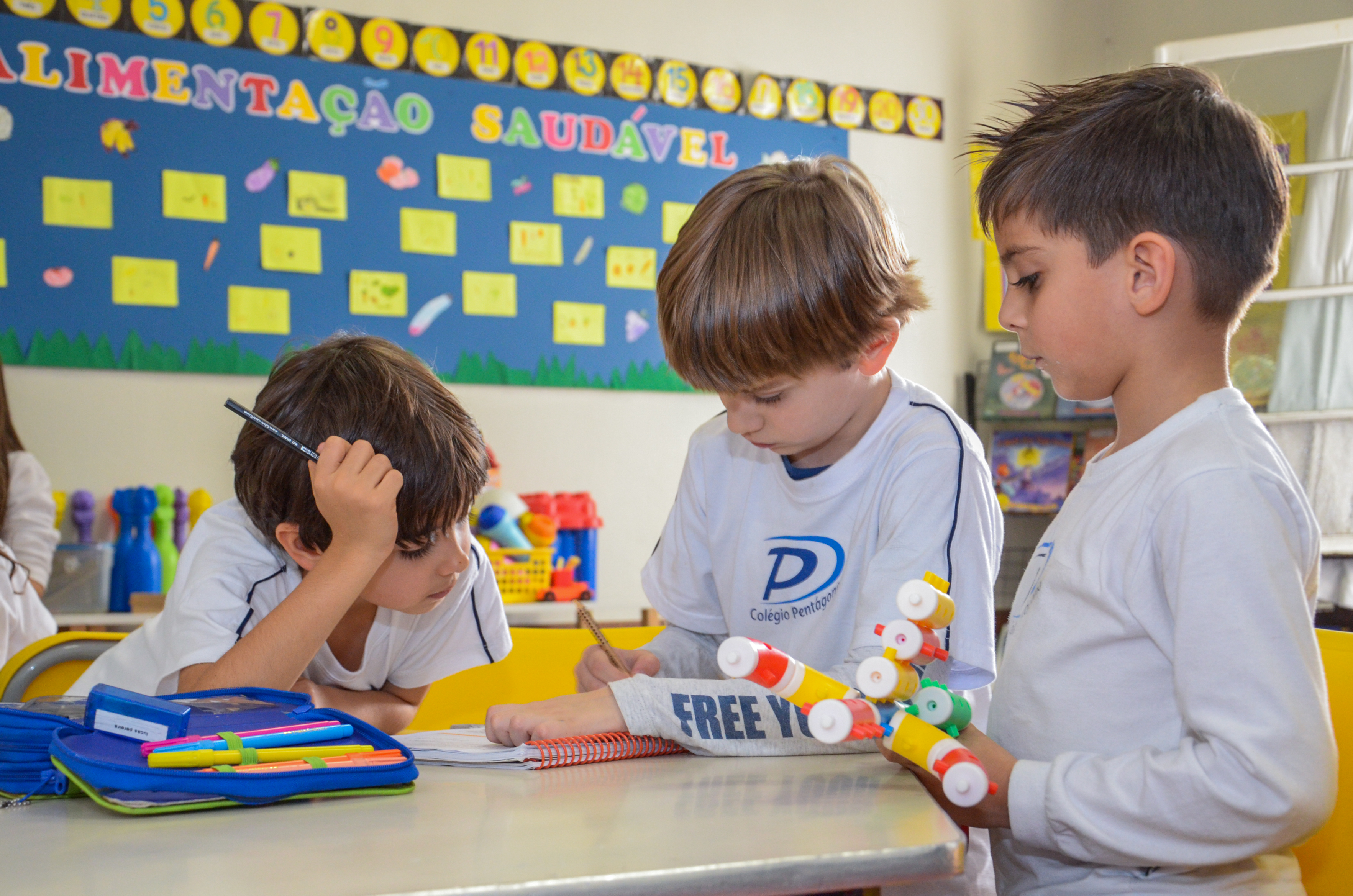Os primeiro momentos são os mais difíceis, mas, aos poucos, a criança vai se familiarizando com o ambiente, criando vínculos com a professora e, em pouco tempo, o milagre acontece: aqueles toquinhos de gente, sentadinhos na roda, ouvindo a professora e participando da conversa. Eles acabam se entregando ao grande prazer da socialização, afinal, estar com amigos é muito bom!
