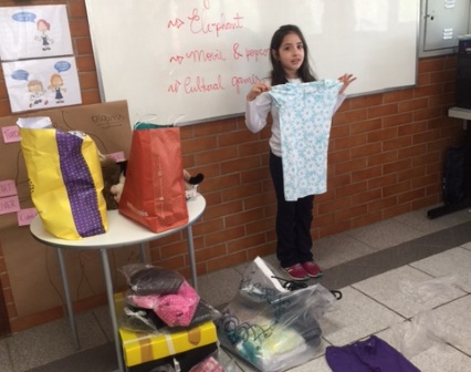 Dentre as diversas ações dos nossos alunos, uma foi a entrega de brinquedos e roupas para serem vendidas no bazar do Voluntariado, a preços baixíssimos, com valores revertidos à Associação Avemare de Alphaville. Outra parte arrecadada será encaminhada à Casa de Transição, que recolhe crianças que sofreram maus tratos domésticos, ou filhos de pais incapacitados de oferecer os respectivos cuidados.
